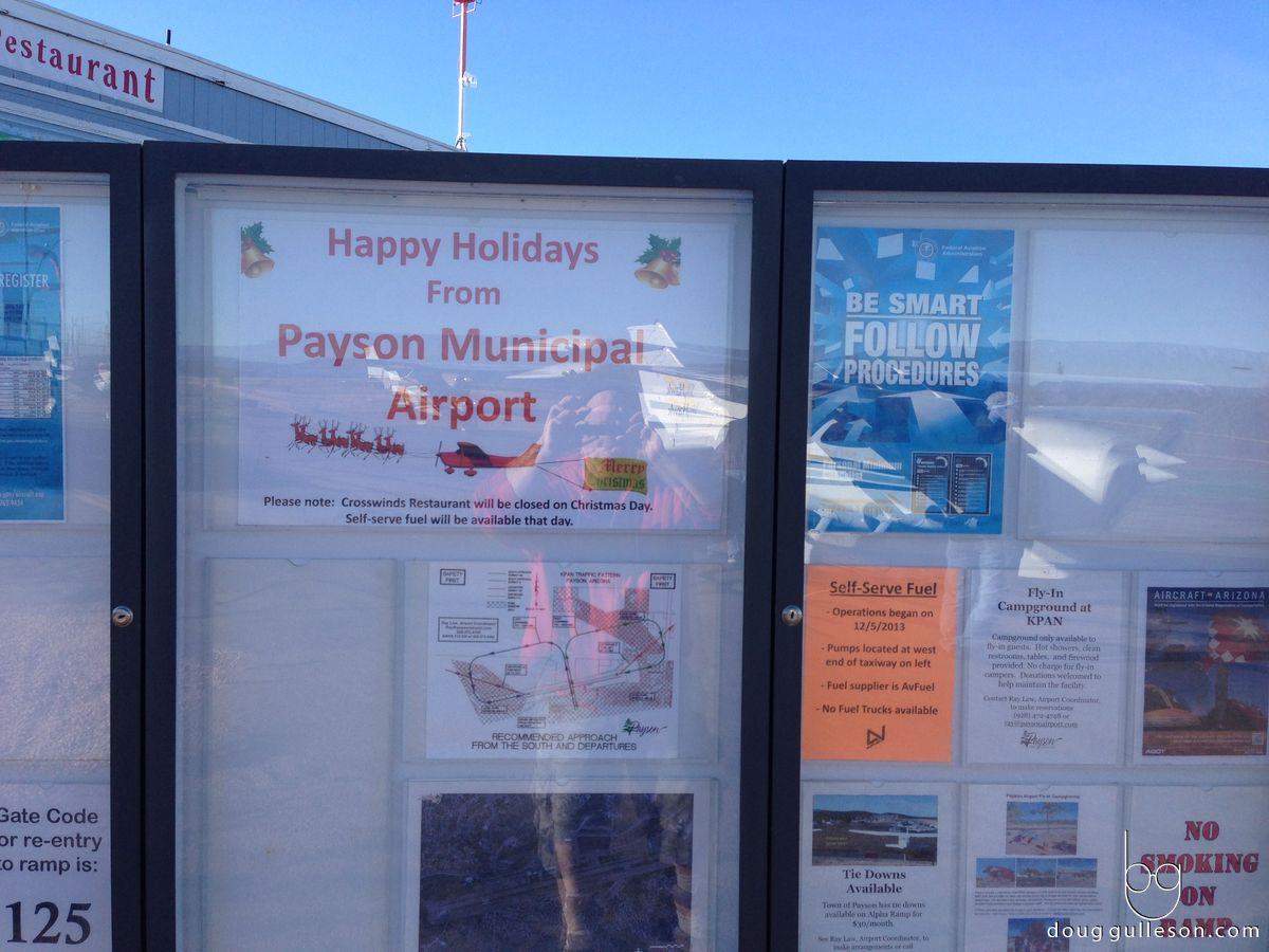This trip we did on New Year’s and it was a blast. Three of us flew up to Payson and then up to Show Low. We had breakfast at the airport in Payson and dropped/picked up a box of blood in Show Low. I have never been to the Ar izona White Mountains and it was really cool! The most popular White Mountain destinations are Alpine, Heber/Overgaard, Greer, Payson, Pinetop/Lakeside, Show Low, Snowflake/Taylor, and Springerville. Most Americans think Arizona is all dessert. Far from it! About 75 percent of Arizona (north of Phoenix) is mostly high desert and mountains. Yep, we also are the Grand Canyon State!